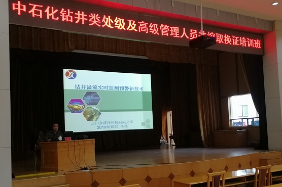 2018年10月,本公司领导应中石化集团公司井控办邀请,为集团公司主办的处级干部井控取证培训班授课,重点介绍了钻井溢流监测的新技术。